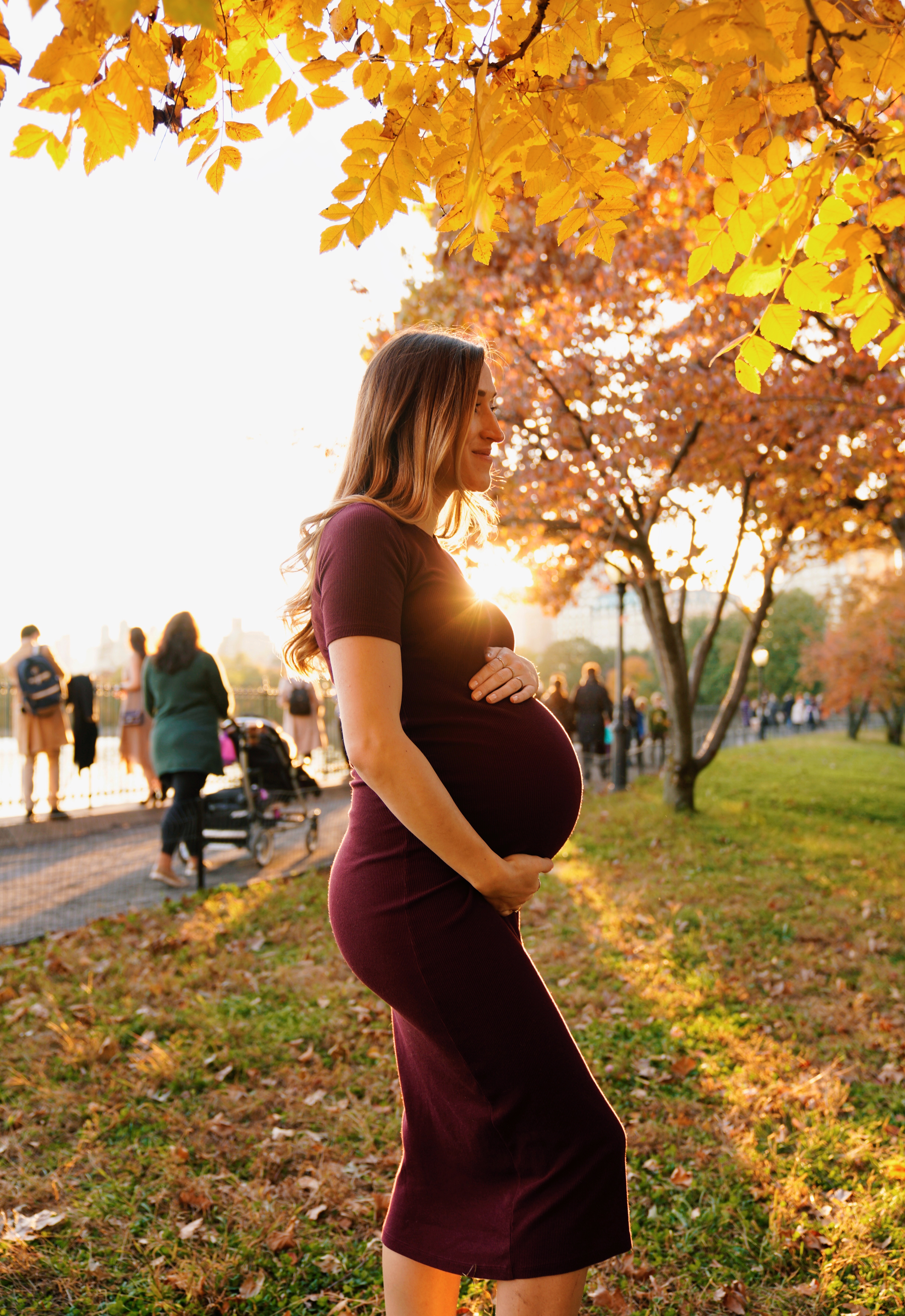Lighting came out well, the background is blurred, but you can easily make out the baby bump. The golden light is pretty solid. Success!