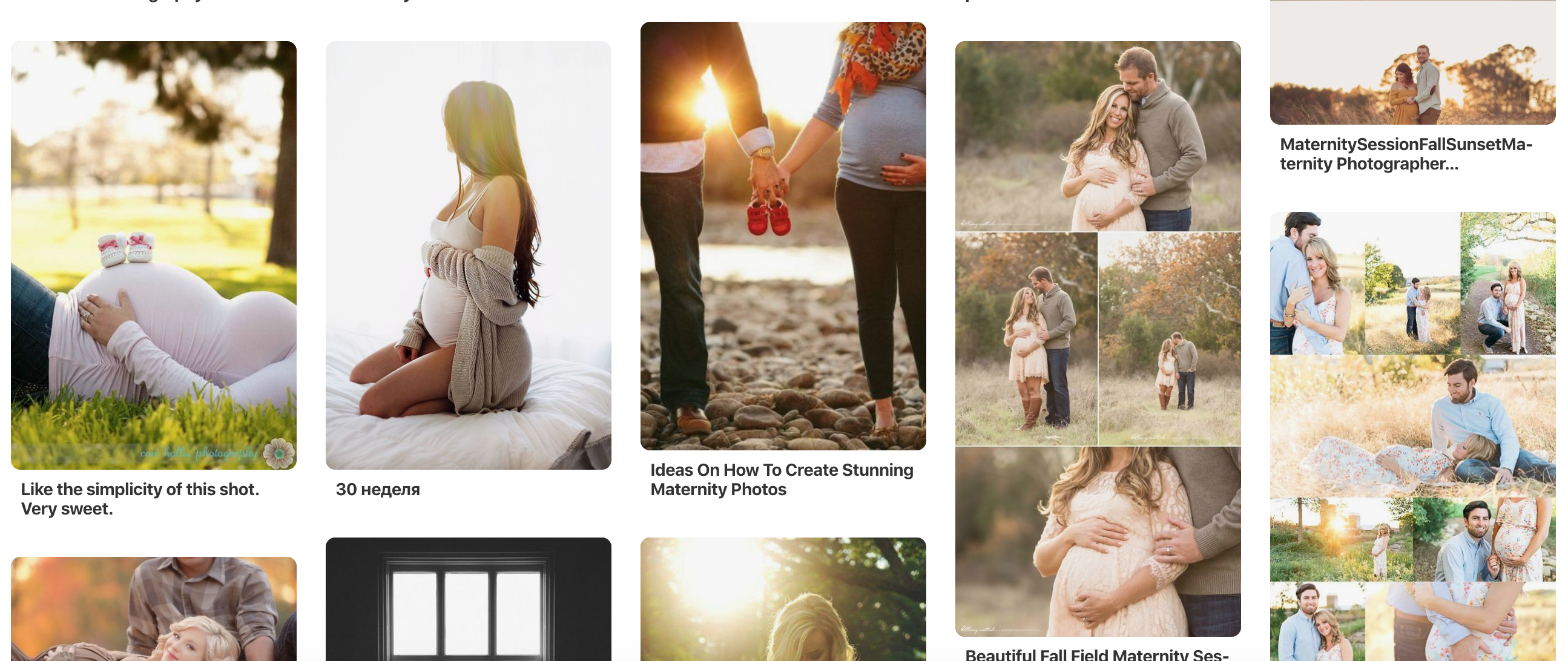 Next step was to do the same exercise myself, and crawl the internet for images that seemed to match this mood board, but were interesting enough to draw inspiration from. An hour of searching for “maternity photoshoot” on Google, Instagram, and Pinterest was enough to give me some inspiration and ideas to try out.