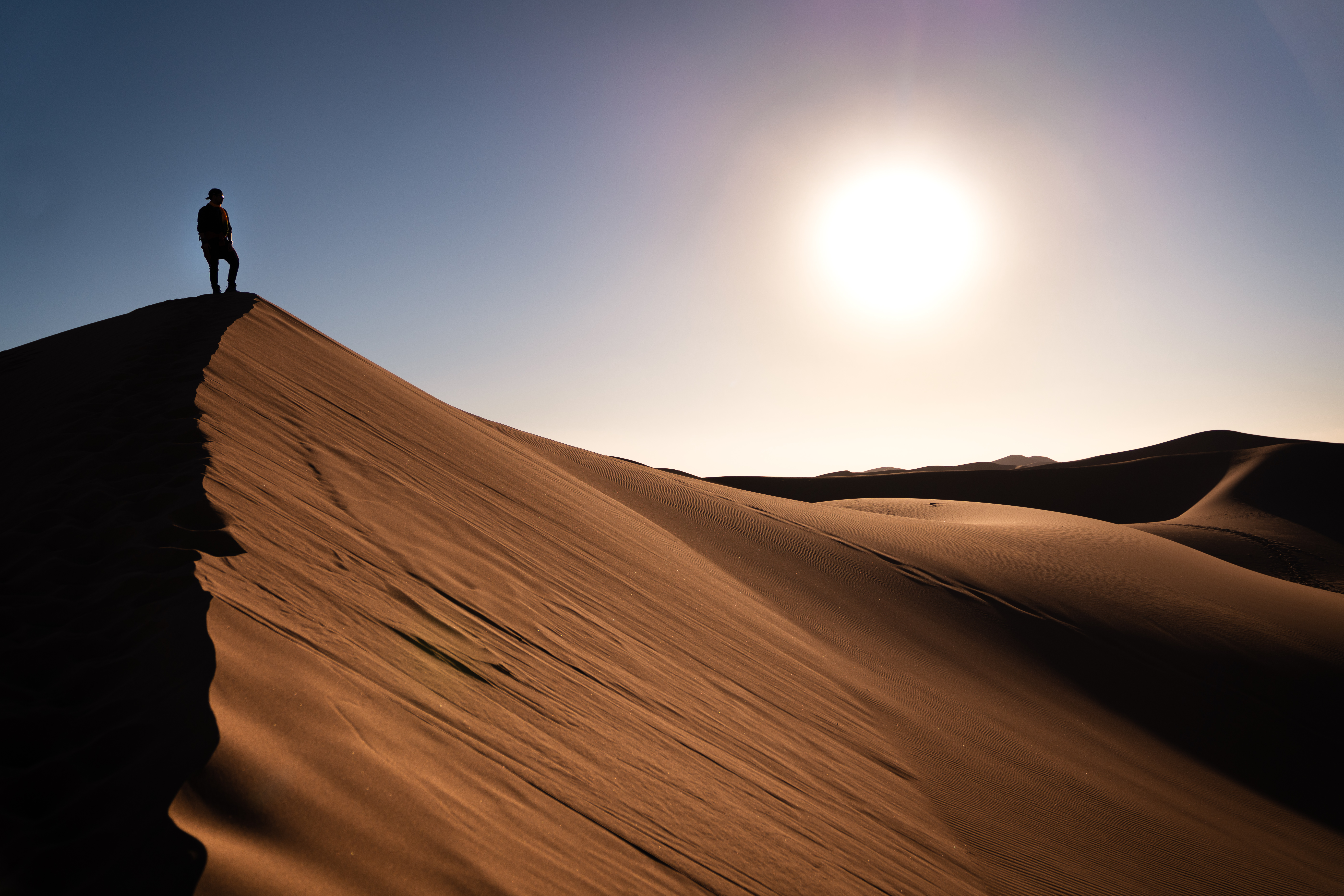 December 31, 2018: Our next stop, after a good night’s sleep at Dades Valley was the Sahara Desert. After yet another early wake up, we started our drive just as the sky started turning blue, then purple, then pink, and orange. Our shuttle driver pulled into a gas station by the highway just as the sun peeked over the hills in the distance. We got out to stretch our legs. It was really cold, and my body was absolutely not ready to face the near-freezing temperature. At this point, someone had the brilliant idea to do an early morning hip-hop dance session. Someone else suddenly produced a bluetooth speaker and four people started performing a little choreographed routine. I quickly grabbed my camera and sat down on the ground to catch the sunlight shining through their legs. After getting this shot, I promptly put the camera away, and joined the party, along with about 20 other people. It was a great way to beat the cold: