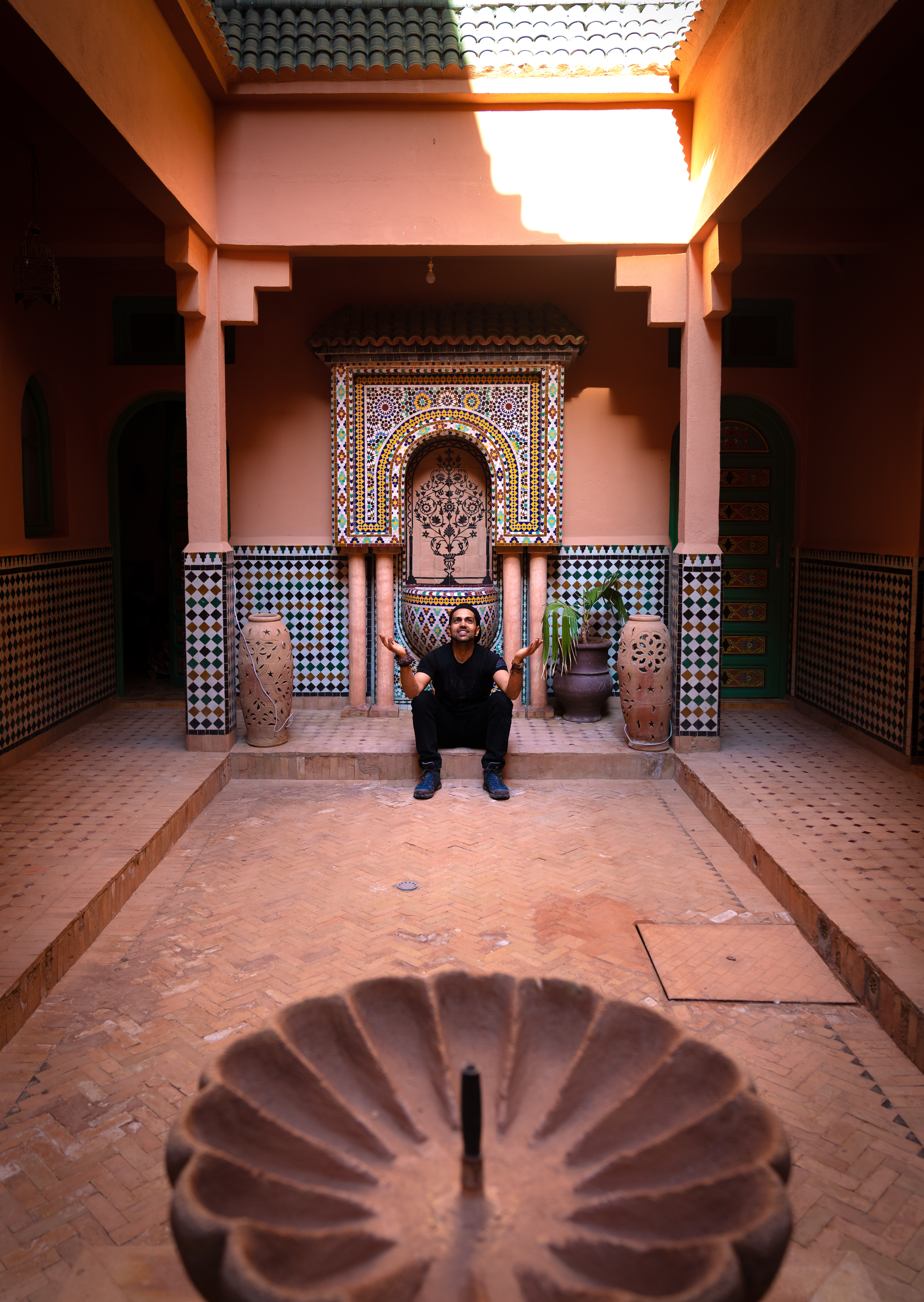 January 3, 2019: As we were checking out from our hostel in Aït Benhaddou, I noticed a little courtyard that looked cute. I decided it was time to hand someone the camera and get a photograph for myself. Pity that the fountain wasn’t on: